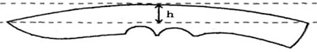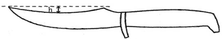 Ножи, у которых величина прогиба обуха и верхней части рукояти ножа, имеющего форму дуги в виде "коромысла", вверх от условной прямой линии, соединяющей острие клинка и верхнюю оконечность рукояти, превышает 15 мм.