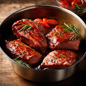 На 0,75 л красного или белого сухого вина — полстакана виноградного уксуса, 2—3 моркови, 2—3 луковицы, 1—2 гвоздики, 1—2 лавровых листа, 1—2 дольки чеснока, половину чайной ложки тмина, половину чайной ложки душистого перца. Маринад держат на слабом огне, пока объем не уменьшится на одну треть. Затем охлаждают, процеживают и заливают им мясо.