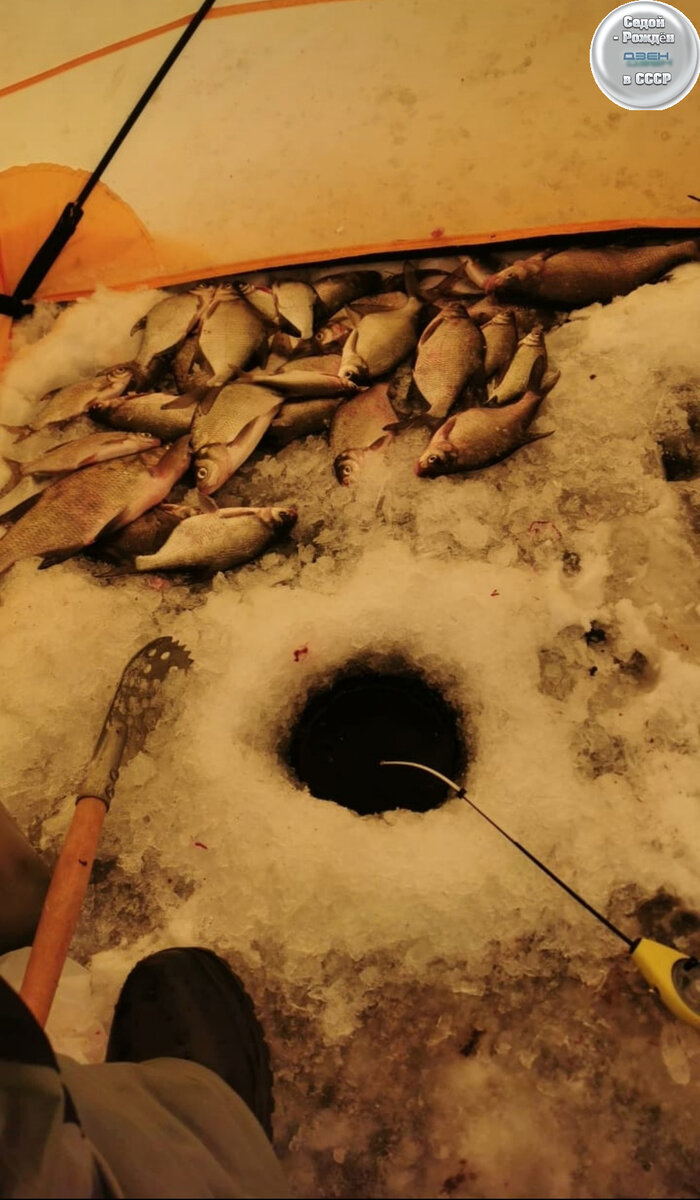 Прибыв на место, разведали местность, набурив море лунок и нашли те, под которыми стояла рыба. Быстро установили палатки, и начали ловить. Зимняя рыбалка процесс творческий. Кто то ходит в поисках рыбы, кто то предпочитает не выходить из палатки. Но в этот день и не потребовалось выхода. Сразу попали на удачное место.