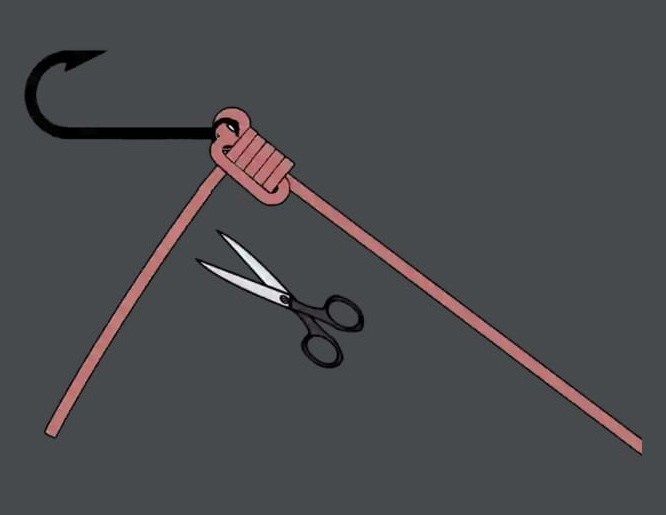 Затяните узел, потянув за оба конца лески. Когда узел будет затянут, обрежьте лишнюю часть конца лески.