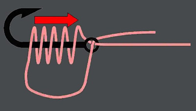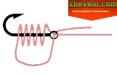 Узел "Ребекка" подходит как для моноволоконной лески, так и для пдетённой. Рекомендуется делать 5 оборотов лески вокруг цевья крючка. Прочность узла 67%-95% от прочности лески.