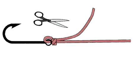 Проденьте конец лески через ушко крючка или колечко приманки.