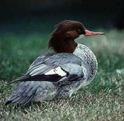 Большой крохаль — довольно крупная птица, длина крыла 262—290 мм. Клюв у нее узкий, усаженный острыми, твердыми зубцами (самки и молодые птенцы имеют не более 15 зубцов на краях надклювья), ширинапередней части не более 10 мм