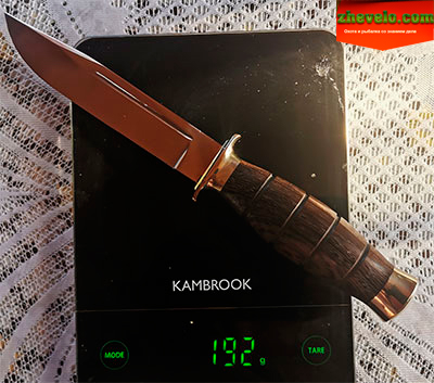 Такой нож можно найти у мастеров-кузнецов. Я выбрал себе нож из стали 95х18, которая является кованной нержавеющей сталью с твердостью 58 HRC. Он отлично лежит в руке и имеет хороший вес.