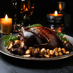 Тушку начиняют орехами и мелкими кусочками свиного сала или сливочного масла. Вместо орехов можно взять бруснику или клюкву. Тушку обернуть тонкими ломтиками свиного сала, поместить в жаровню и жарить в духовке (молодые 40—45 мин, старые косачи — 1—2,5 часа).