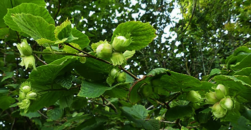 **Плоды**: Плоды орешника — орехи, заключённые в зелёную обёртку (плюску). Плодоношение начинается обычно на 4–5 год после посадки растения. Созревают орехи в конце лета — начале осени. Внутри плюски находится орех с твёрдой скорлупой и вкусным ядром.