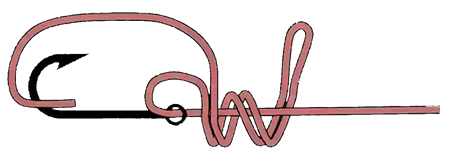 Пропустите свободный конец лески через образованную петлю три-четыре раза.